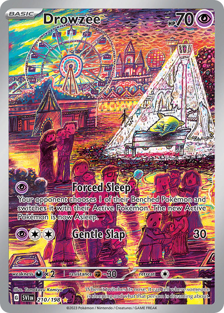 Unleash the power of the Pokémon TCG universe with this stunning near mint Alternate Art Holo Pokémon card. This Illustration Rare Drowzee 210/198 is perfect for battling, trading, or enhancing your collection. Don't miss out on this iconic piece of Pokémon history!